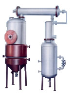 2.為克服濃縮罐頂二次蒸汽在未進(jìn)入冷凝器前被冷凝而返回罐內(nèi)的缺點。本設(shè)備將冷凝器改為斜臥式;